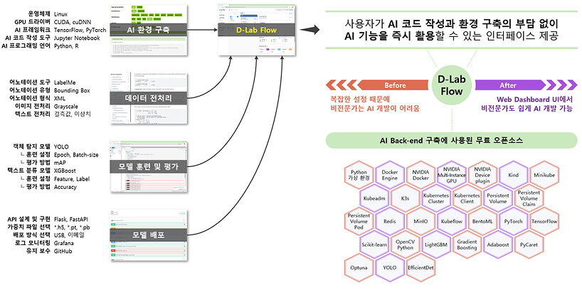 - MLOps 연계를 통한 AI 모델 최적화, 버전 관리, 이미지 전처리 및 증강, 학습 모니터링 기능 제공